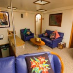 The 10 roomy and light Staterooms are all on the same level as the salon with no stairs to climb. They have individually controlled air-conditioning, large windows and hatches, private bathrooms, plenty of storage space and can be configured with either double or twin beds.