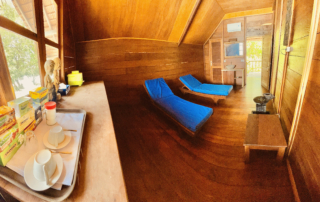 All Cottages are equipped with mosquito nets, air conditioning, ceiling fans, minibars, a safe, and a large bench that is equipped with a power socket and LED light especially for photographers to manage their equipment. Free WiFi service is available. The bathrooms are spacious and have two lava stone sinks, a toilet, a shower, and a hairdryer.