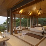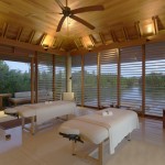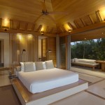 Amanyara offers 36 timber-shingled guest pavilions and two Two-Bedroom Pool Pavilion Suites. All Pavilions have a combined bedroom and living room separated from the bathroom area by a decorative wooden screen. The entrance terrace featuring two daybeds and the interior is revealed beyond sliding glass doors. A central king-size bed is joined by a writing desk, reading chair and an entertainment unit with flat-screen TV and CD/DVD player. The spacious bathroom features an elegant, freestanding bathtub, twin vanities and a rain shower. Dramatic overhanging rooflines shade terraces on three sides of each Pavilion. These outdoor areas are accessed through large glass doors which open to cooling sea breezes.