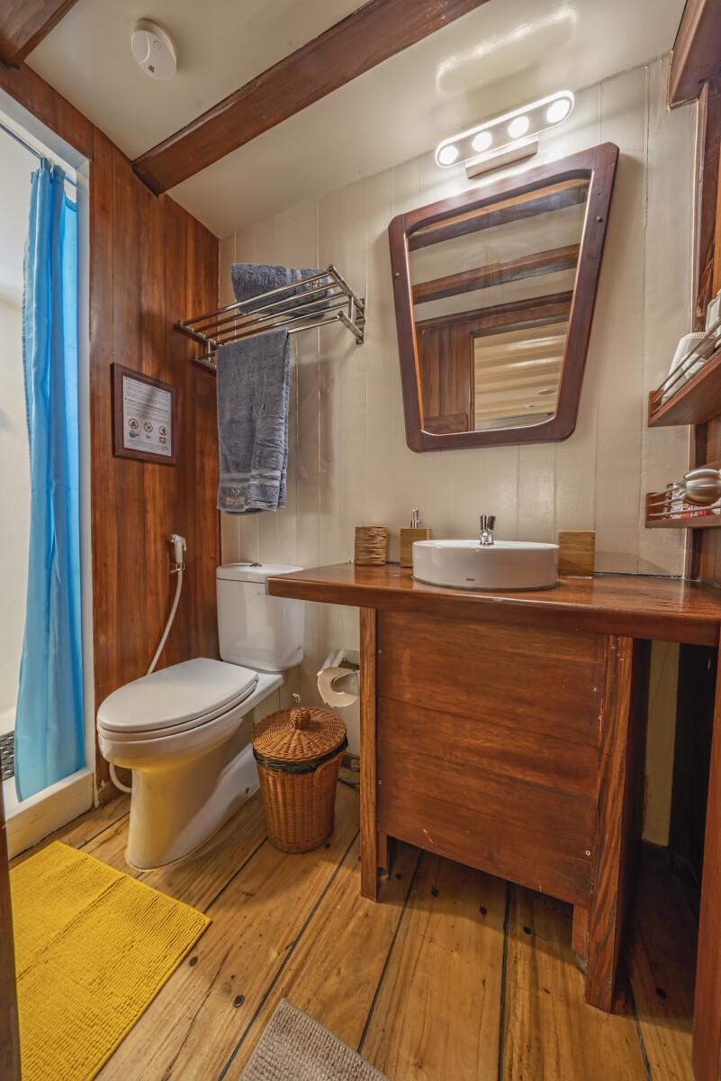 The MV Ambai, receives up to 16 divers in absolute comfort. Traditionally built from Iron wood and other tropical hardwood, the boat is however specially designed to offer the best liveaboard diving cruise experience.  Ambai Liveaboard has 8 boutique cabins with individually controlled air conditioning and ensuite bathrooms with hot water. An inside lounge and restaurant, large shadow deck areas, and a Sun deck complete the common parts.