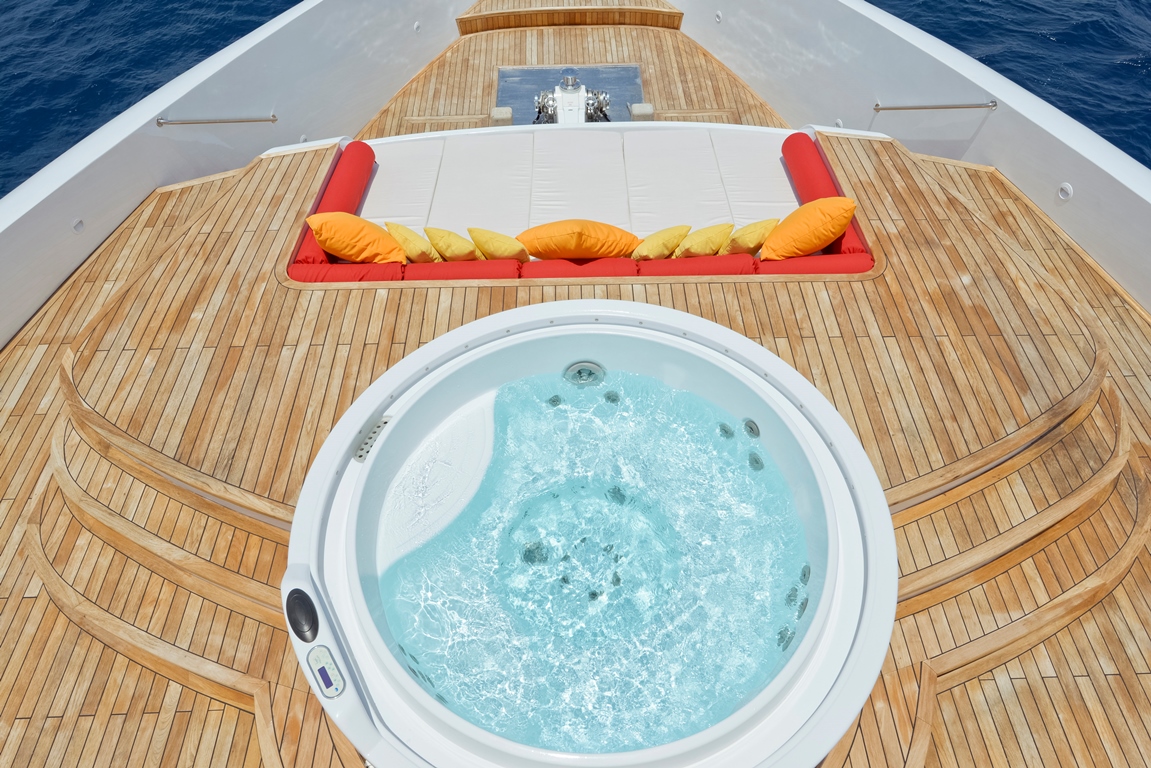 The lower deck has 1 master cabin with a double bed and 6 deluxe cabins with a double and single bed on top. The main deck has 2 master suites with a sea view, double bed, shower, and a bathtub! The upper deck has 1 sea view deluxe cabin and 2 junior suites with a double and single bed.