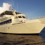 The Cayman Aggressor IV is a 110’ yacht with a wide beam. Built and powered for comfort, safety and stability, she is diesel-powered, cruises at 10 knots and has 110-volt power on-board. A variety of nightly entertainment, including diving, fish identification presentations, movies, games and more.