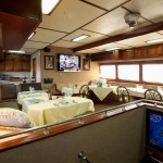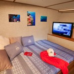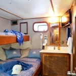 Accommodations include six Deluxe staterooms, each having a double and single berth with lavatory, private head and shower, porthole and TV. There are two Twin shared staterooms each with two single berths that share a bathroom/head between the two staterooms. One Master stateroom with one double bed, lavatory, private head and shower, closet, porthole and TV. All staterooms have climate controls.