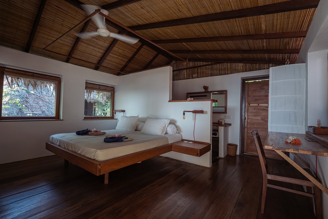 Seven beach view villa’s offer privacy and proximity to the white sand beach, whilst the double bedroom garden villa is the perfect escape for families or couples of close friends. The superior rooms in the main building are all unique but share the big first floor balcony of the main building according to Coral Eye’s original community philosophy.