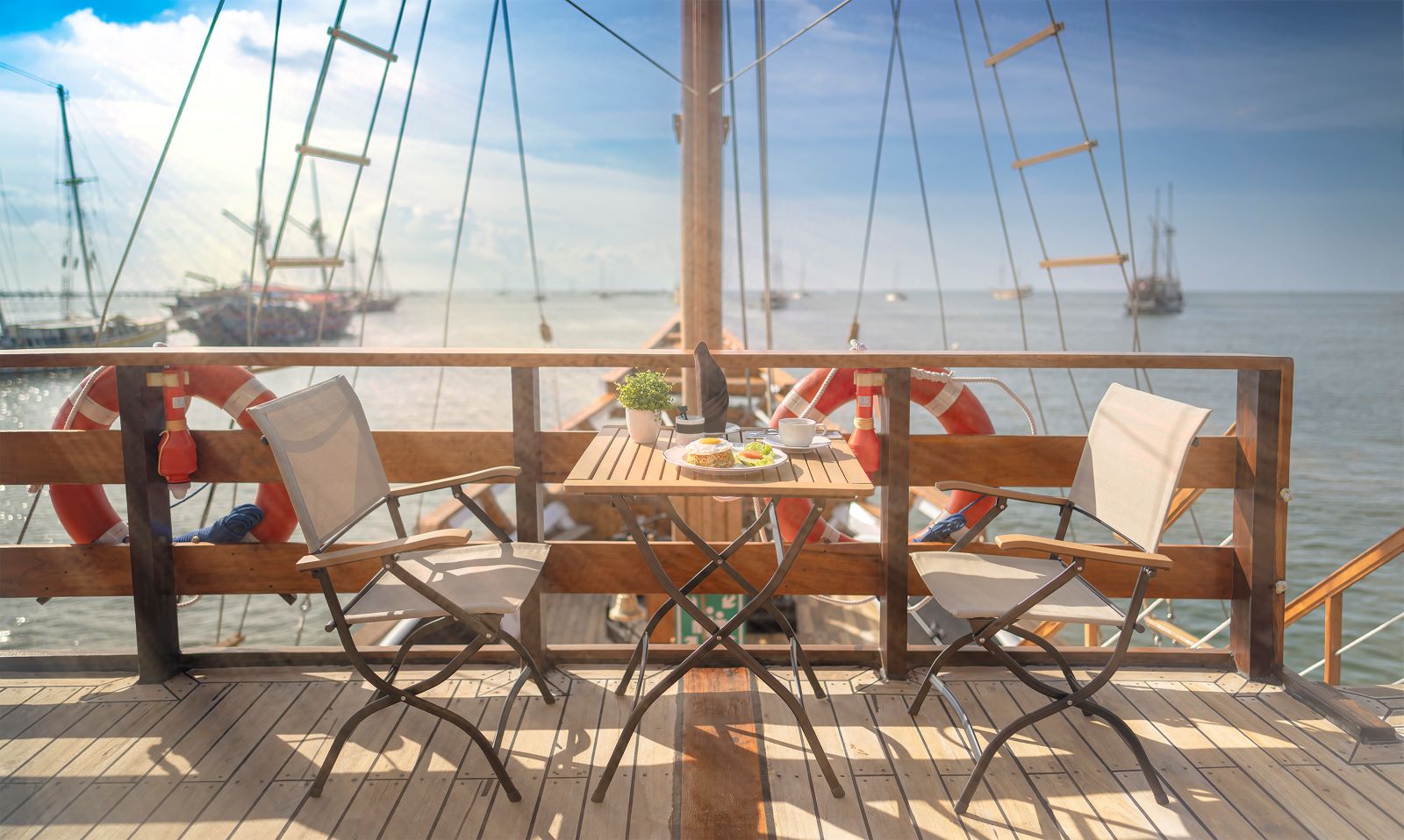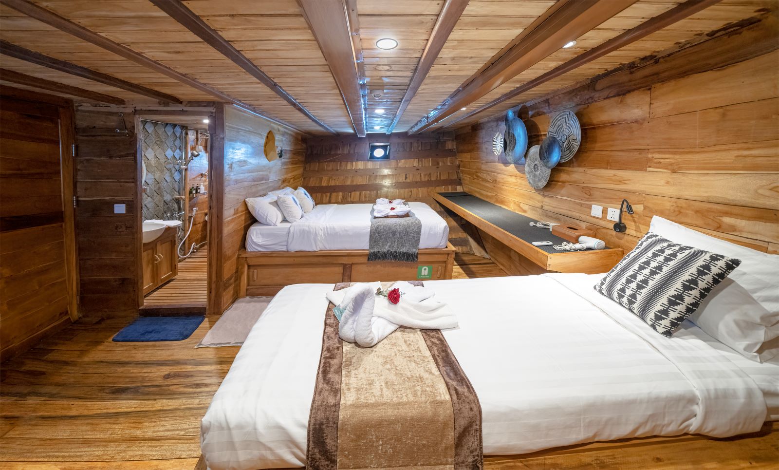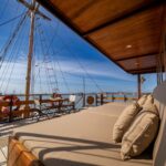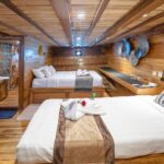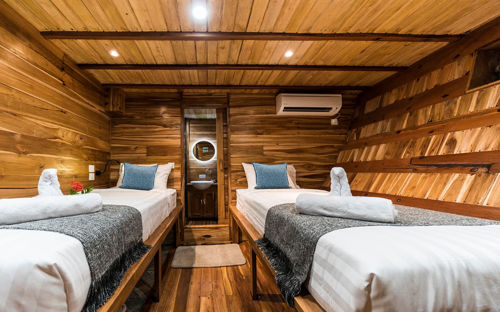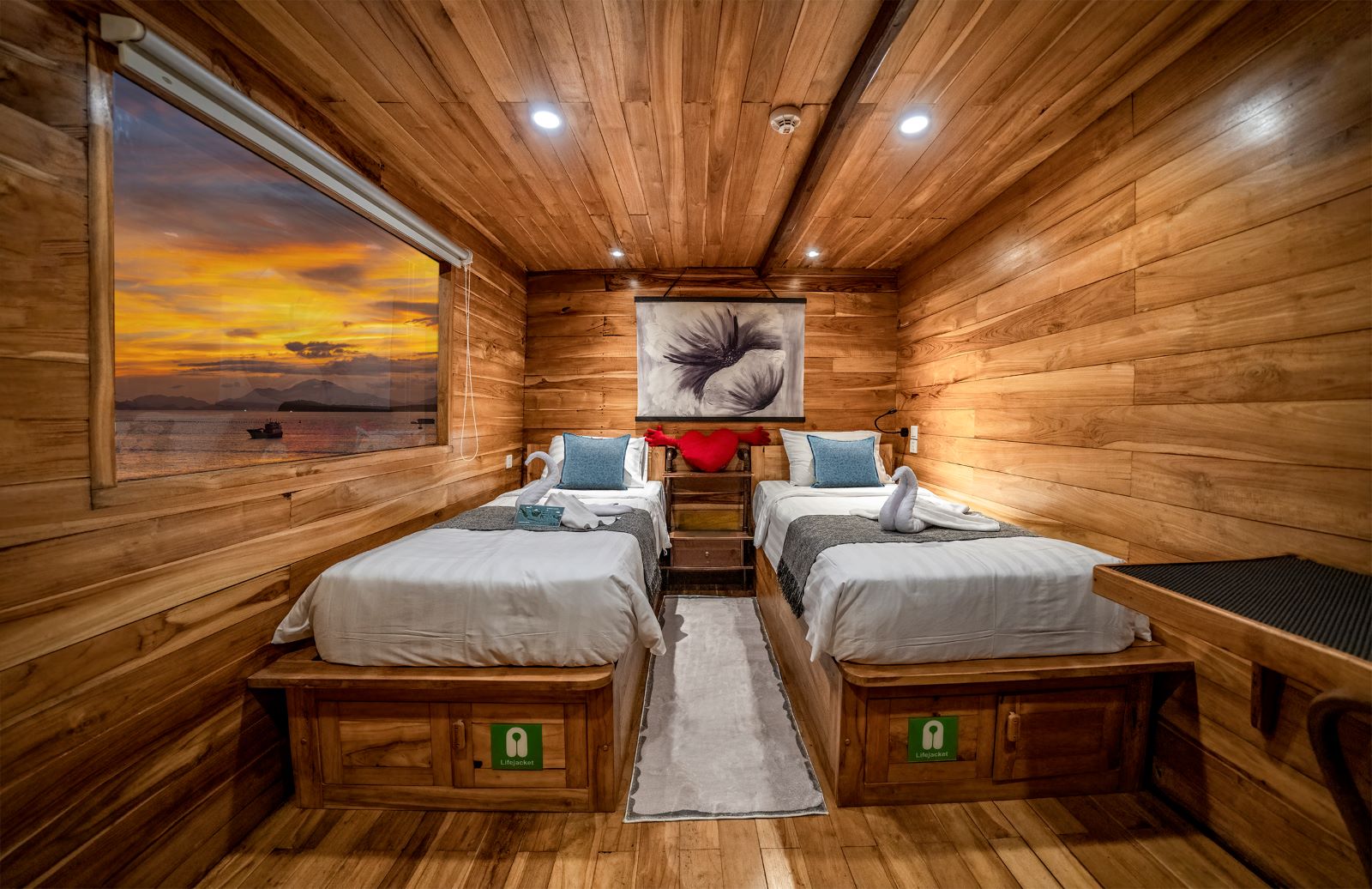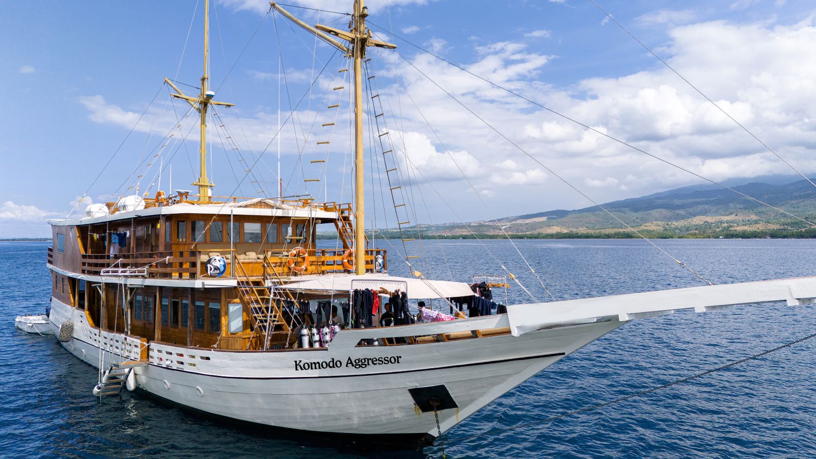 The Komodo Aggressor is a 95 ft. pinisi-style sailing yacht. She is finely crafted with twin masts and two engines and is a beautiful wooden yacht built in Indonesia. The yacht was built and powered for comfort, safety, and stability.