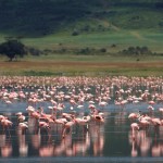 The saline waters of Lake Magadi attract both the lesser and the greater flamingo, with flocks of several thousand forming when the lake is low. Other bird species on the Crater floor include the ostrich and the Kori bustard, the world’s heaviest flying bird.