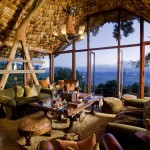 An eclectic blend of elegant teak panelling, Victorian furnishings and whimsical African touches creates a sumptuous atmosphere that is as elegant and unique as the Crater itself. Leather chairs recline in front of a lit fireplace and raw silk curtains screen a private veranda. Even the gigantic bathtub set under its hand-beaded chandelier and the massive round shower offer tantalizing glimpses of the world’s most famous caldera.