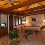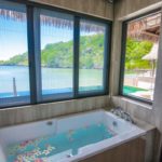 Palau Pacific Resort offers cottage type villas across 64 acres of lush tropical gardens. This luxury resort features 165 air-conditioned rooms decorated in an island motif. 60 Garden View Rooms, 42 Ocean View rooms, 50 Oceanfront rooms, 4 Luxury Ocean Front Junior Suites, 4 Luxury Ocean Front Suites and 5 Water Bungalows that sit out over the ocean and new Pristine Villas.. All accommodations feature King size or Twin beds, Private patio or balcony, Air conditioning, and ceiling fans, Color Television, In-room safe, Electric kettle, Minibar, Bathroom with tub and shower, a complete selection of bath amenities, Nightly turndown service, Room service available until 10:30pm and WiFi internet access.