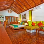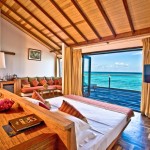 All 129 villas (48 Reethi Villas, 50 Deluxe Villas, 30 Water Villas and 1 Reethi Family Suite) are set amid tropical foliage fringing a long expanse of powder-soft beach or on stilts over the clear blue lagoon and have air-conditioning, a ceiling fan, IDD telephone, mini-bar, in-room safe, satellite television, hairdryer, hot and cold water, with one king bed or twin beds and terrace with deck chairs. In addition, all rooms have private sun loungers with mattress located at the beach.