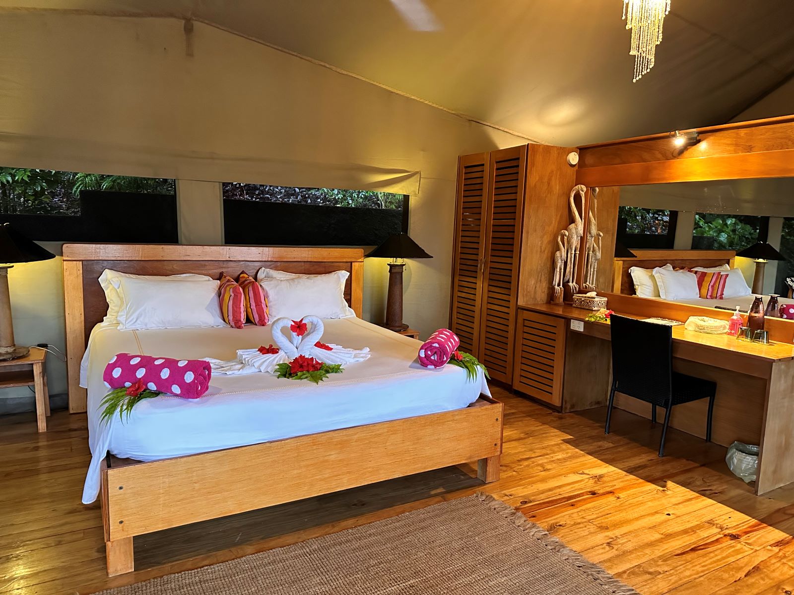 All of their bures are situated on the waterfront in a serene setting only steps from the beach. Choose from our Deluxe bures, Two Bedroom Deluxe bure, or stay in their unique Luxury Tented "Treehouse" bure for an even more immersive nature experience. The deluxe bures have tastefully appointed interiors with a cozy indoor/outdoor atmosphere and both indoor and outdoor showers. The two-bedroom deluxe oceanfront bure is designed with a little more space for family and friends, with a separating door. Conveniently located near resort amenities. The Tented Treehouse bure is a truly unique “African safari” experience in the Fijian rainforest. Our tented waterfront bure is a popular alternative for those looking for a bit more seclusion.