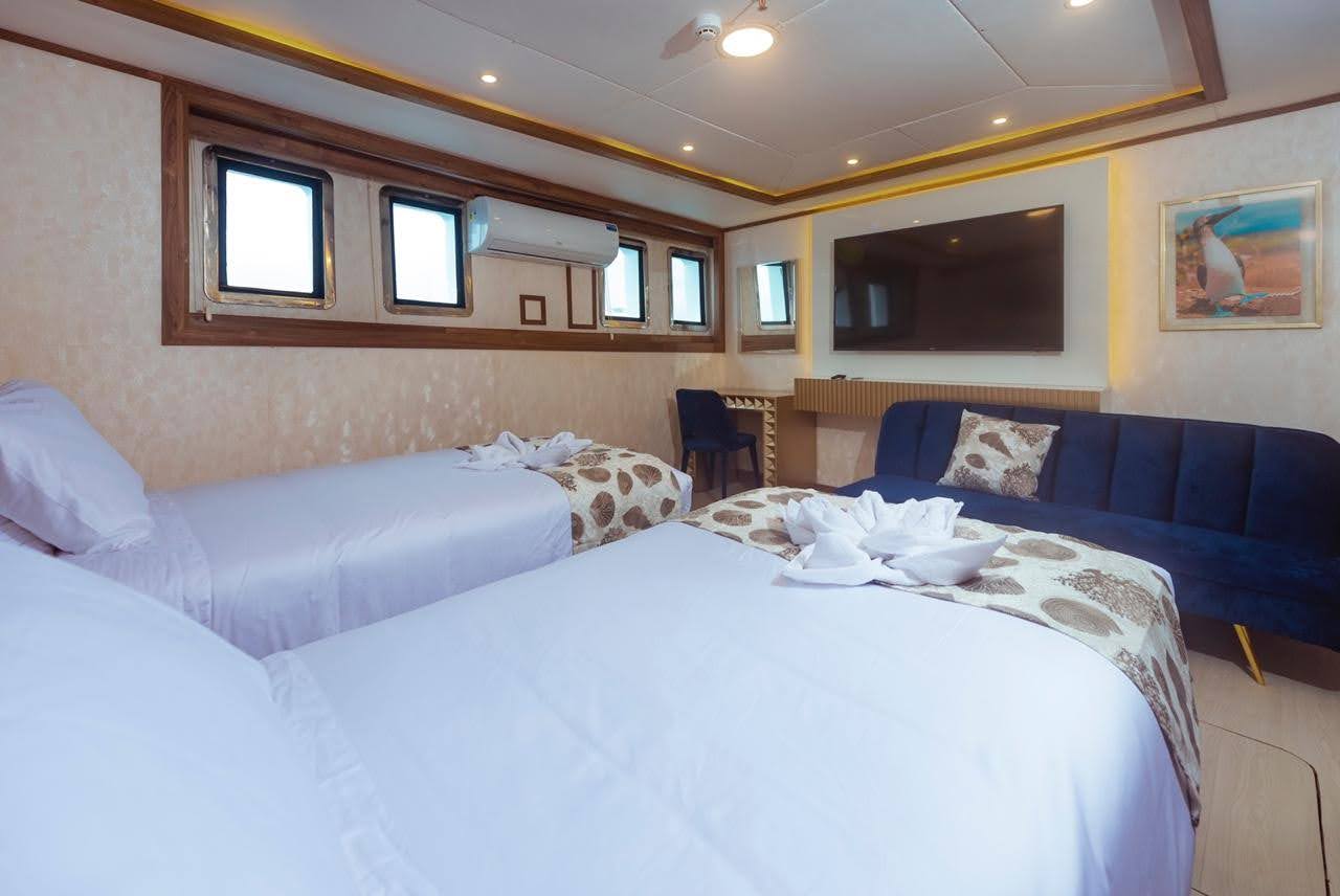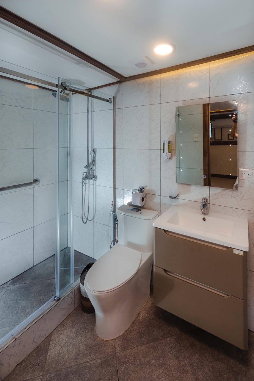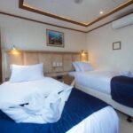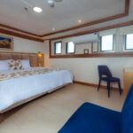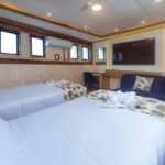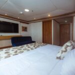 The Tiburon Explorer takes 16 passengers in 9 air-conditioned staterooms on the main and lower decks, all with private bathrooms and showers. Two main deck staterooms have queen beds only while seven staterooms have twin beds and can be converted to queen beds for couples.