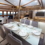 The new, elegant & spacious 16-passenger Tiburon Explorer is 125 feet long and features a partially covered sun deck with a hot tub and ample seating, a salon area with dining, a bar, and an entertainment area. She has WiFi with Satellite Internet.