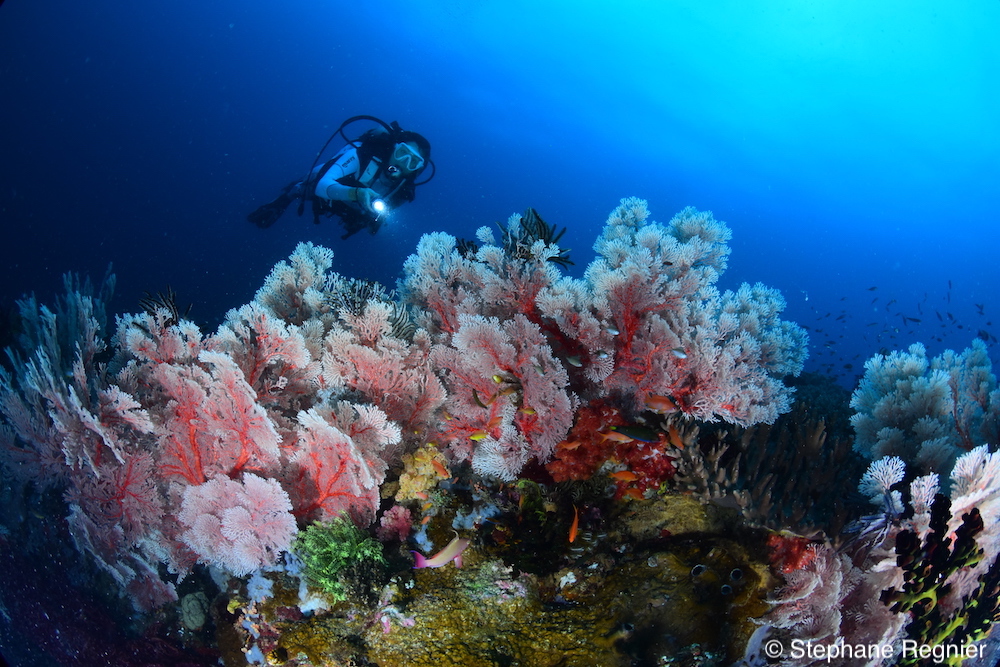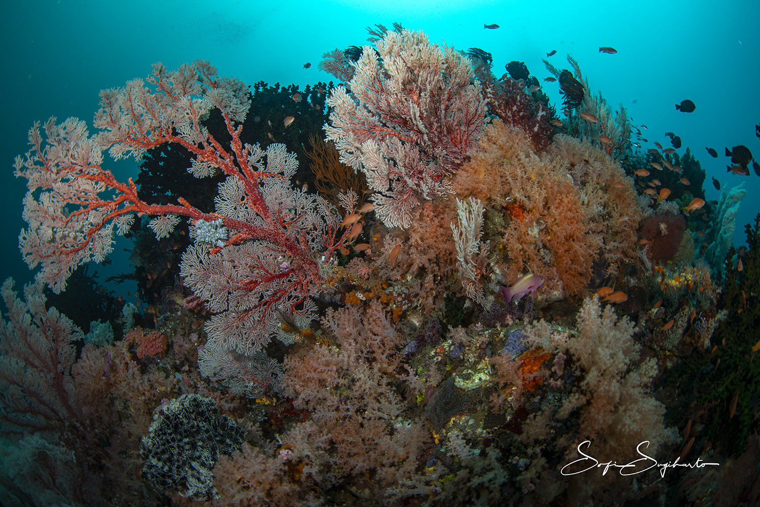 The one and only resort on the East side of Central Sulawesi, the Tompotika Dive Lodge, offers magnificent dive sites. With only five bungalows, the lodge is located on the coastline of a small Indonesian village.  Since 2014, they have been actively protecting the region’s ecosystem with the help of villagers.