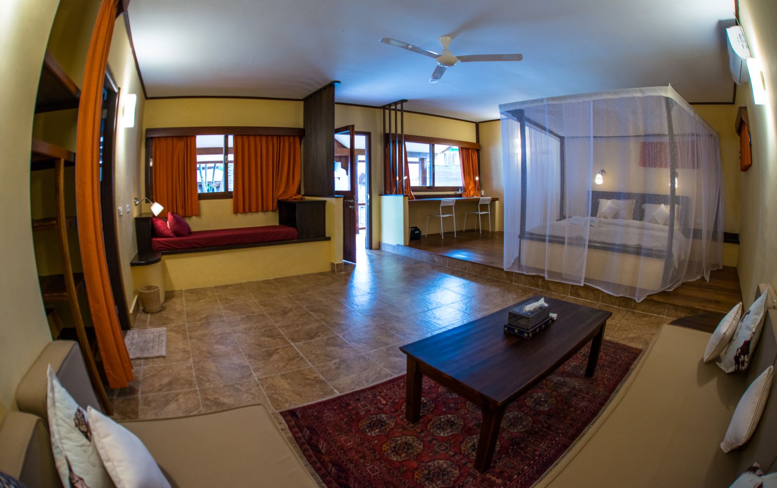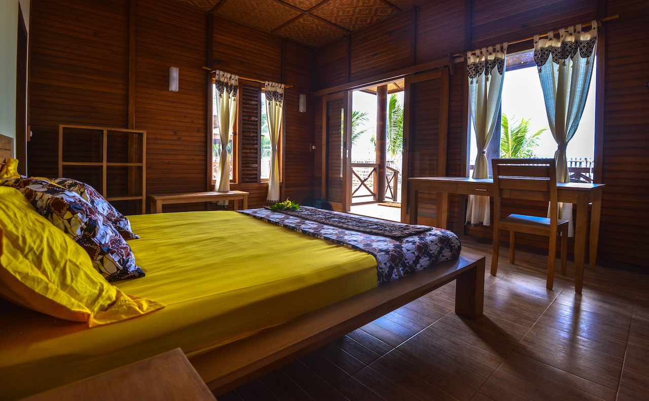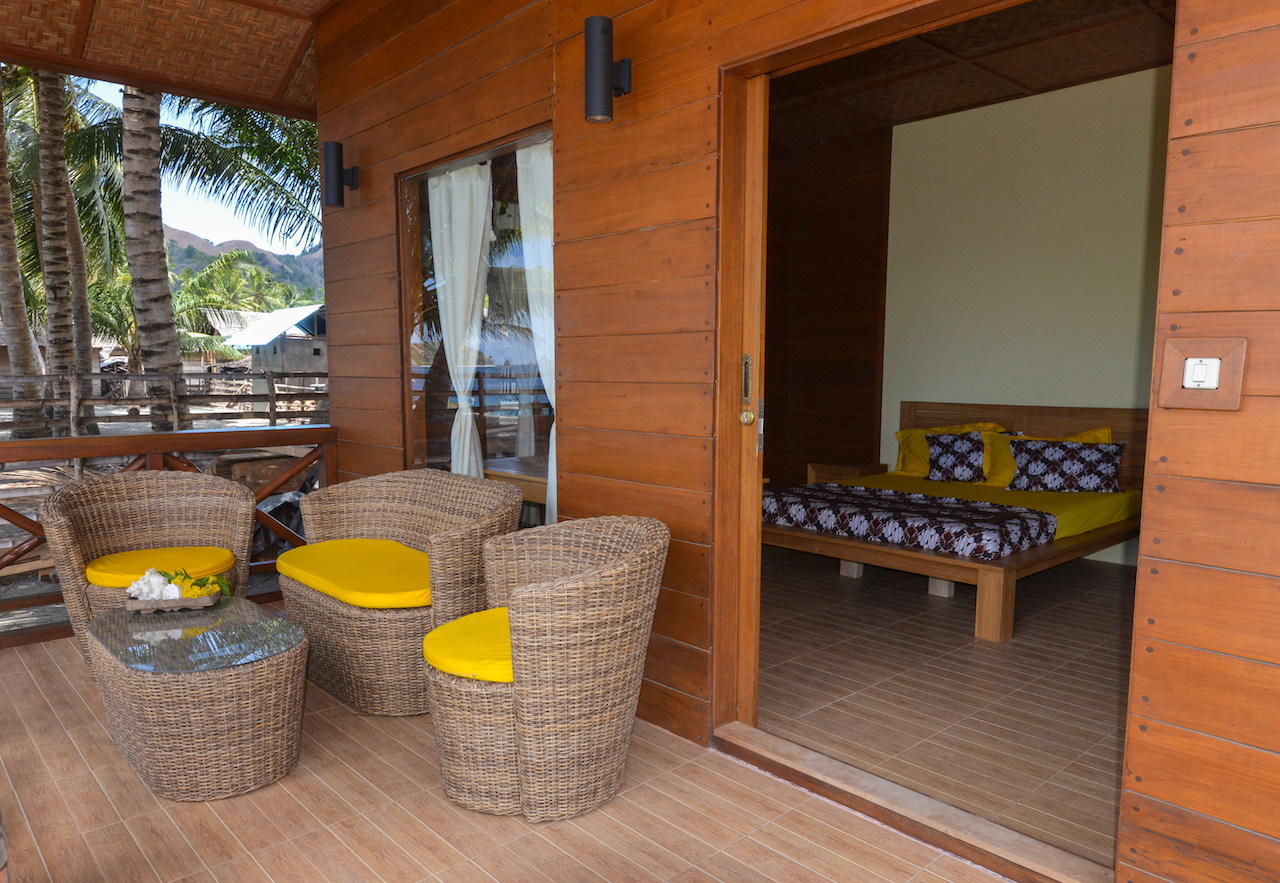 Only 5 bungalows nestled on the beach of a small Indonesian village.  The standard and deluxe bungalows are equipped with air conditioning, fans, and private bathrooms with hot water.  The rooms have numerous 220-volt sockets with a large charging area for your electronics.
